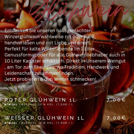 ANGEBOT vom 01.12.2024 bis 01.01.2025 zu jeder Kiste Wein 1 FL.-Glühwein GRATIS-